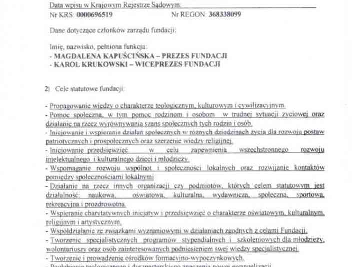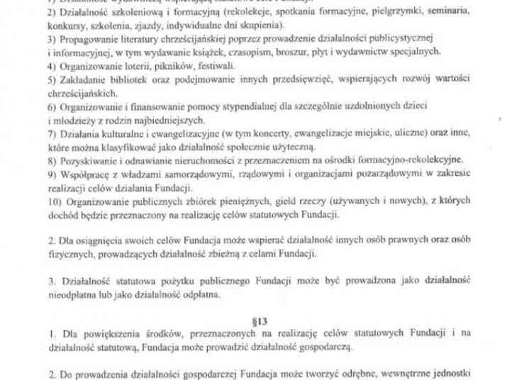 - Współdziałanie ze związkami wyznaniowymi w działaniach zgodnych z celami Fundacji.